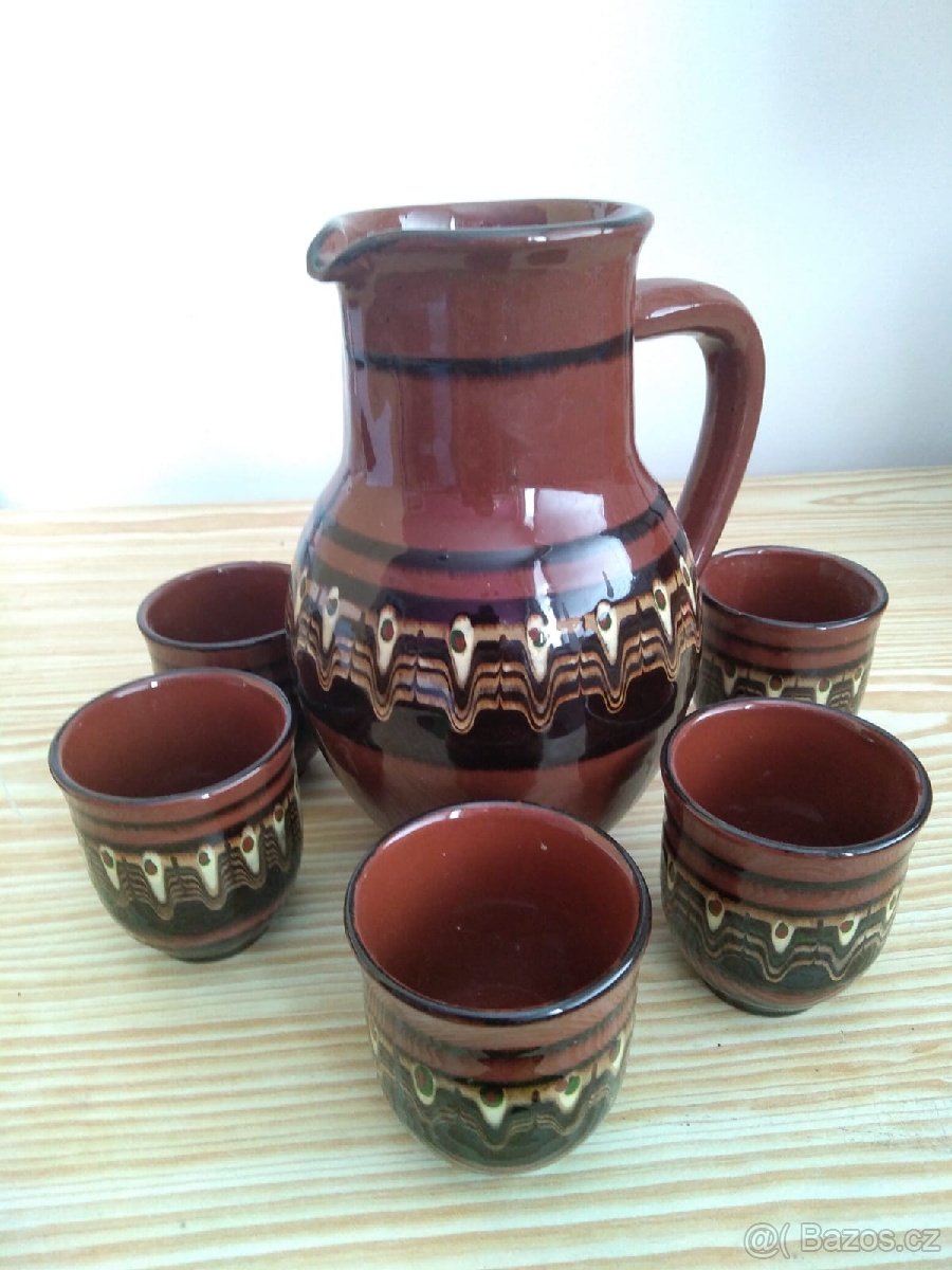 Prodam keramicky dzban se 6 kalisky. Rok 1975. Praha/Zasilkovna.
