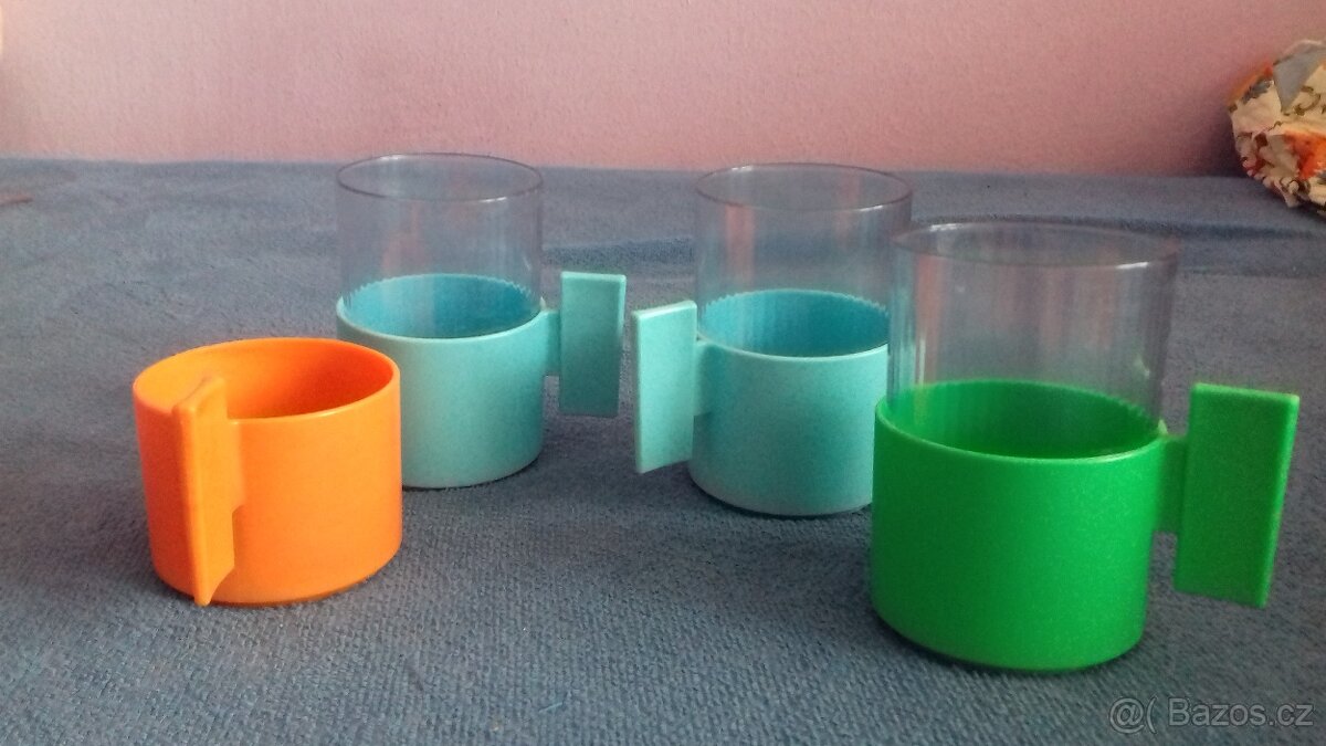 3 ks retro sklenicek + nahradni podsalek. z plastu