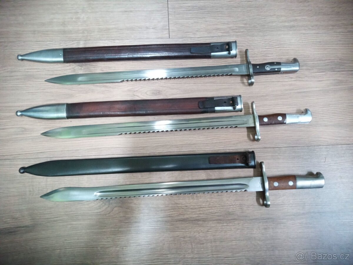 Prodám sbírku švýcarských bodáků, celkem 11 kusů. Tulejový bodák model 1863, modely 1878, 1906 a 1914 s dlouhou čepelí a pilou na hřbetě, model 1889 – tři různá výrobní provedení a různí výrobci, model 1918 – tři různí výrobci a model 1957. K bodákům jsou orig. kožené závěsníky značené výrobcem a rokem výroby v rozmezí 1890 – 1986. Všechny bodáky v původním, sběratelském stavu. Více informací vážnému zájemci, nejlépe vidět osobně.