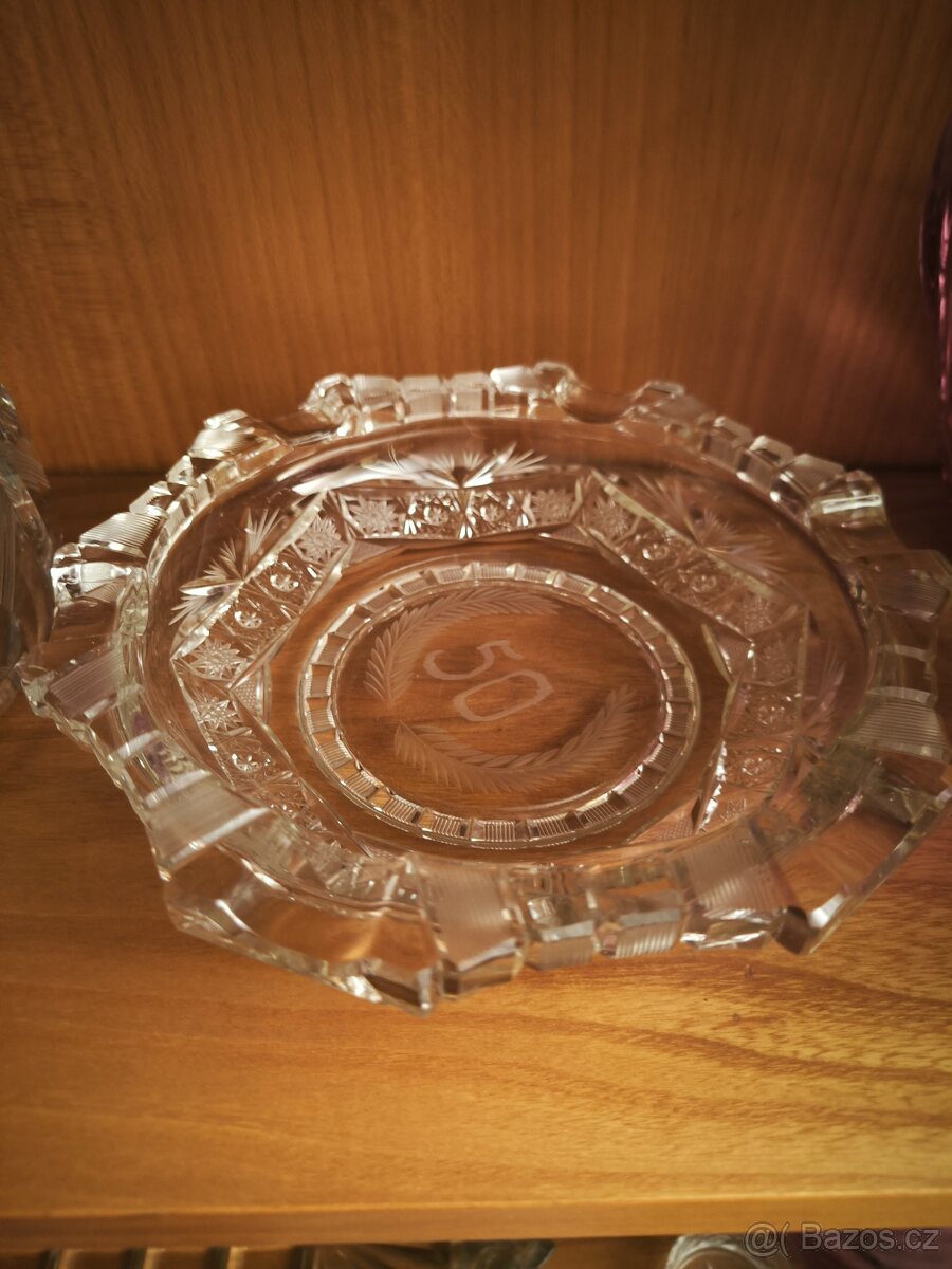 Nabízím zdobenou broušenou mísu/tác s 50, ideální jako dárek k výročí. Průměr 20 cm. Osobní předání Náchod, HK (PCE)