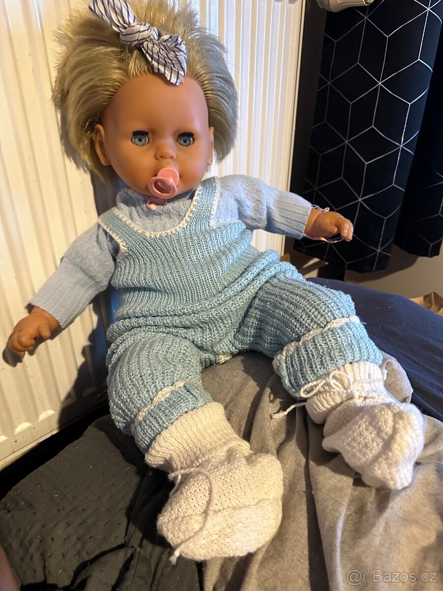Pekna velka panenka cca 60 cm mrkacka s puvodnim dudlikem krasne vlasky retro oblecky