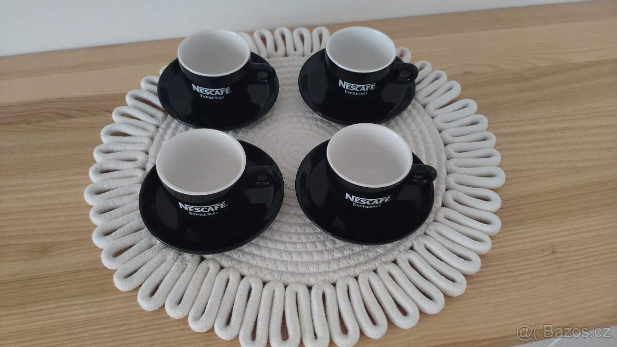Keramické reklamní šálky s podšálky Nescafé Espresso v černé barvě, sada 4ks, nové nepoužité