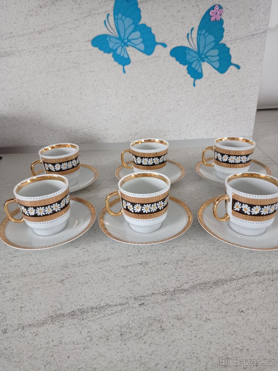 Nabízím retro kávovou soupravu 6 kusů talířků plus 6 kusů podtalířků ,bez vad