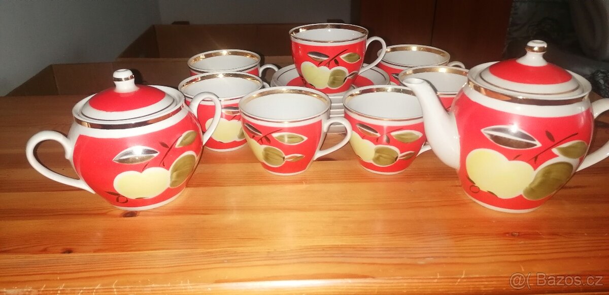 porcelánova čajová souprava z Polonne Porcelain Factory (Polonsky Factory of Artistic Ceramics), ukrajinské továrny na uměleckou keramiku.