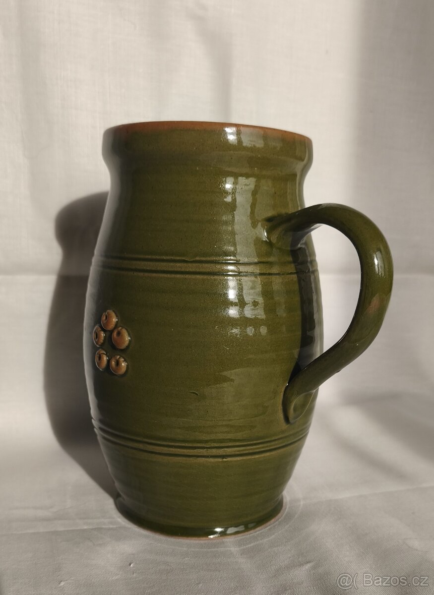 1) Dvojice patřící k sobě. Džbánek 22 cm vysoký, hrnek 12 cm. Nepoužívané, bez oťuků.