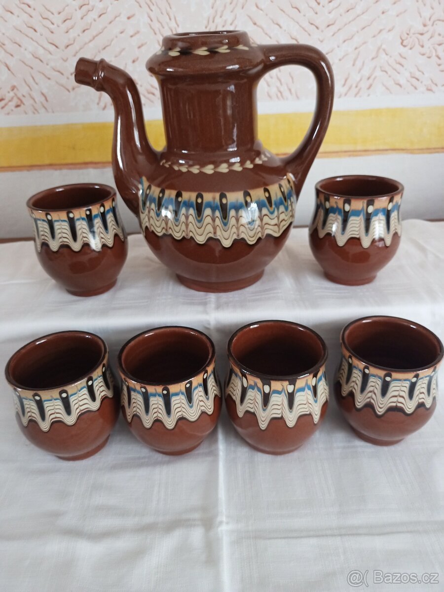 Bulharská keramika - džbán a 6x pohárek (retro) - [1.2. 2026]Nabízím tzv. Bulharskou keramiku, sadu velkého džbánu a 6 ks pohárku, viz foto. Keramika je v dobrém stavu, bez otluků. Nebyla používaná, ale pouze vystavená. Uvedená cena je za celou sadu, prodávám pouze jako komplet.