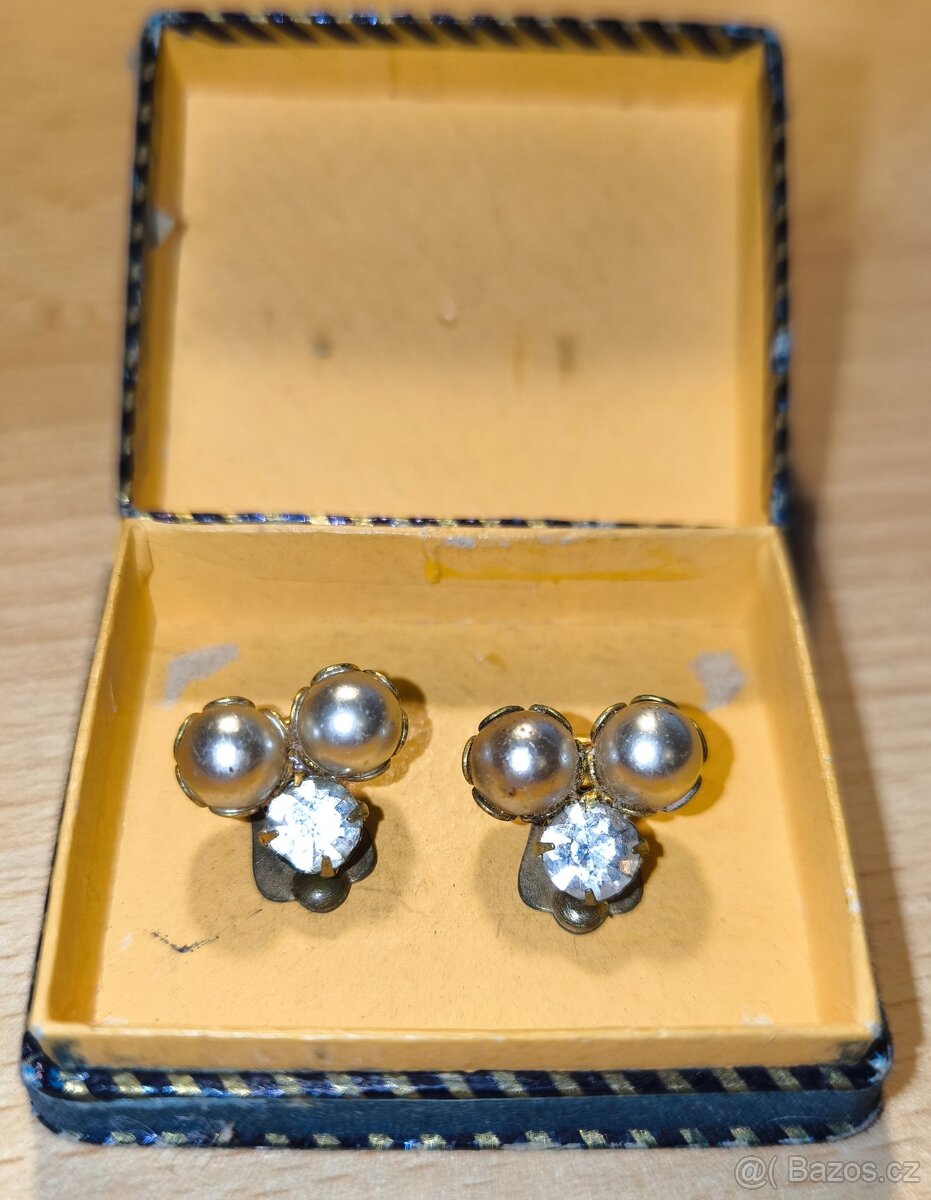 Prodám velmi staré náušnice - klipsy ve staré krabičce. Cca polovina min. století.