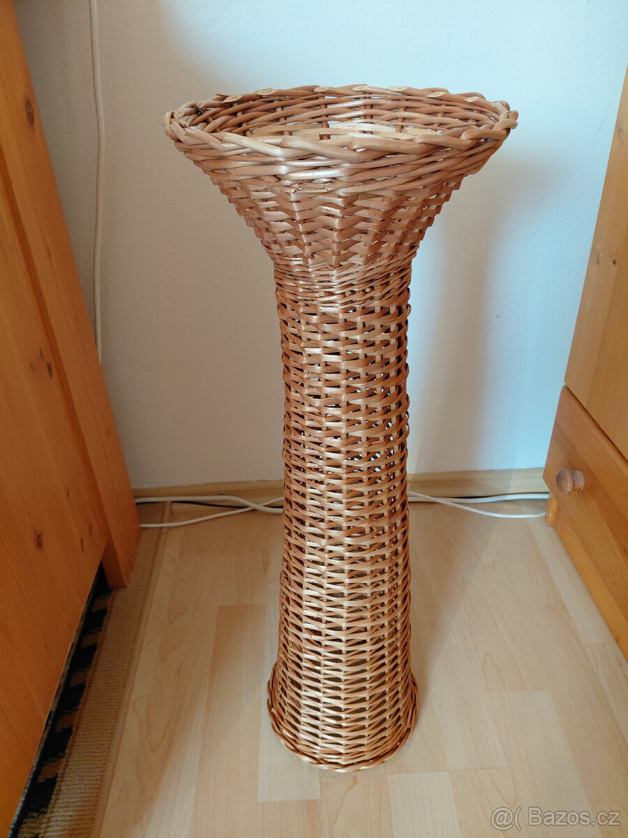 Nabízím proutěný stojan,výška 62cm,horní průměr 16cm,dolní 21cm + poštovné.