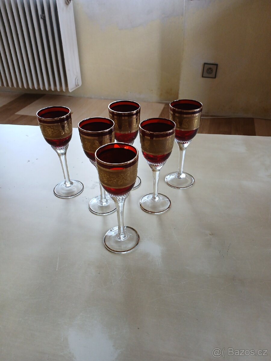 Prodám sadu šesti skleniček na likér se zlacením