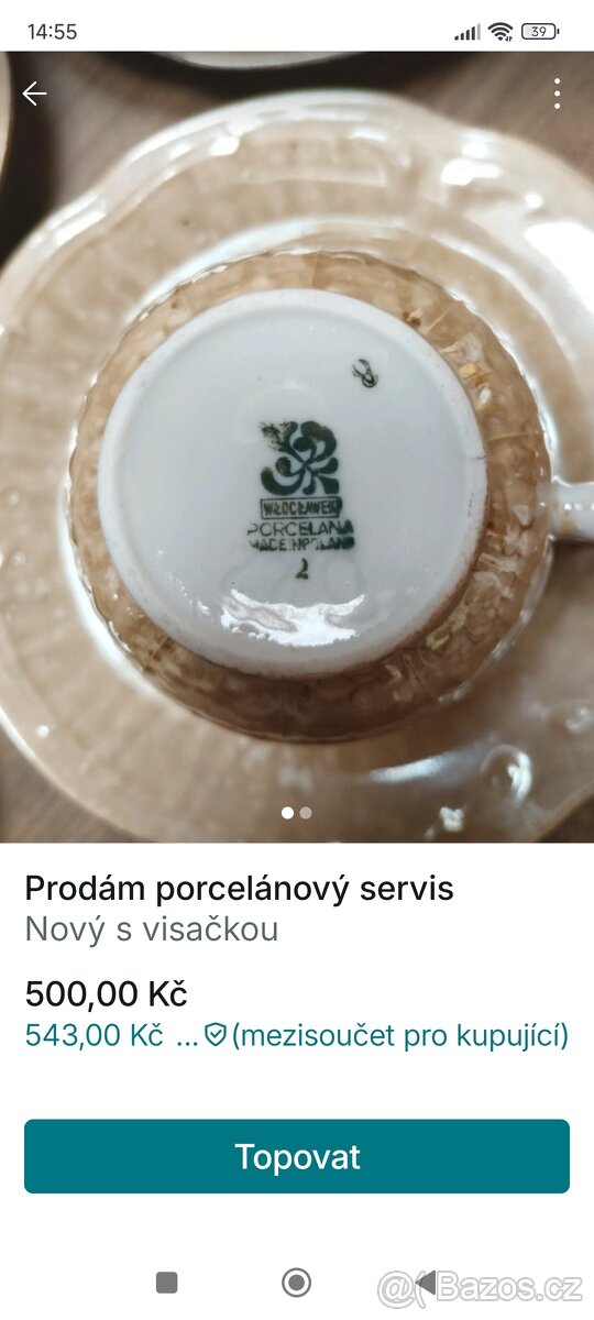 Prodám nepoužívaný čajový servis