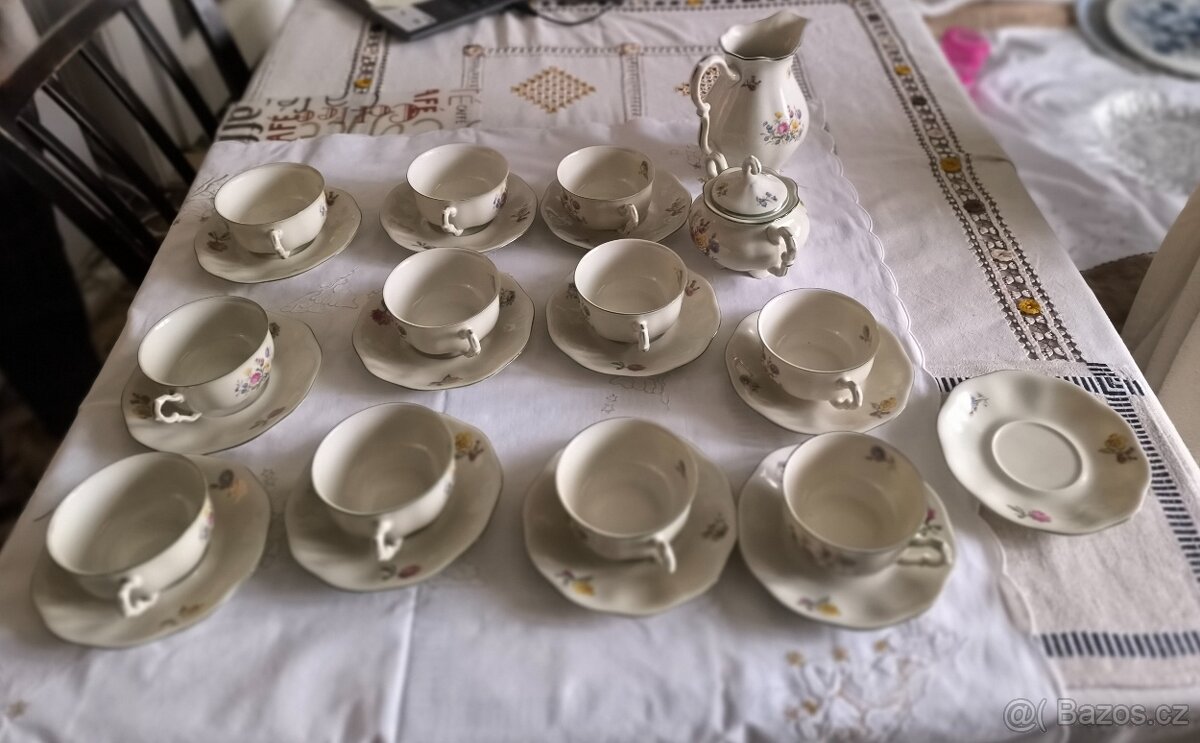 Sada obsahuje: 11 hrnků, 12 podšálků, cukřenku a džbánek.