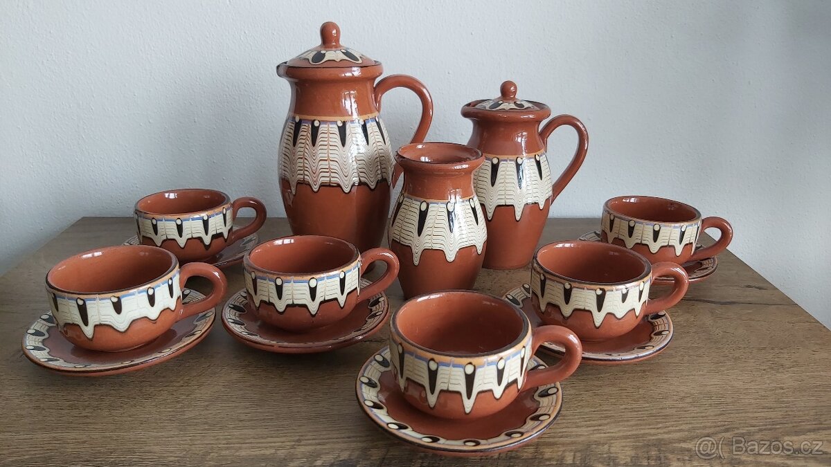 Keramická souprava vhodná jako dekorace na chalupu nebo do stylového bydlení. Nepoužívané.
