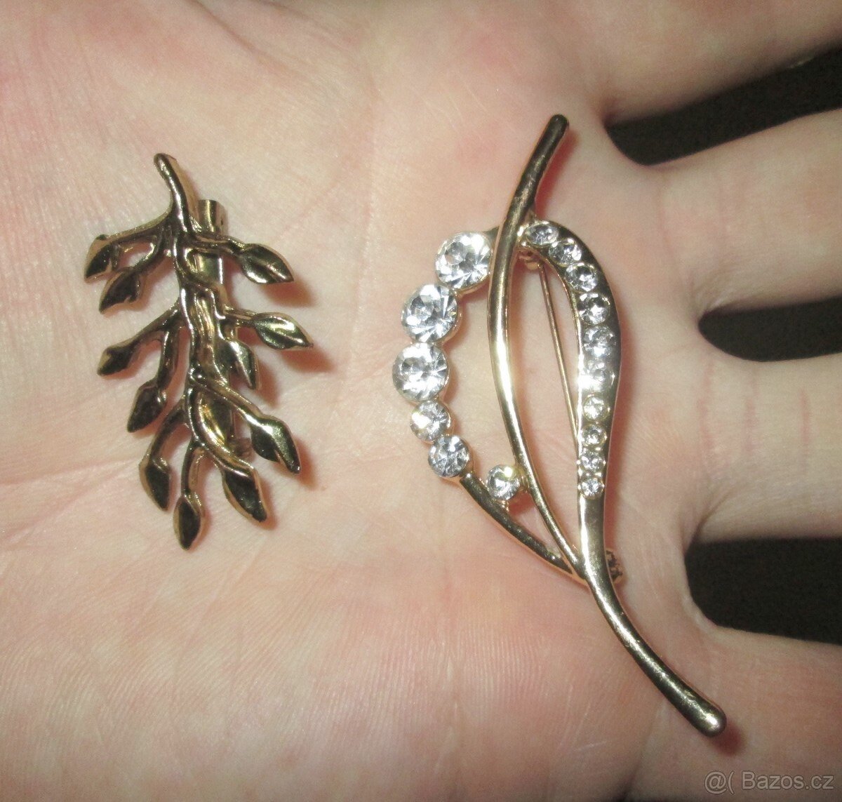 Staré brože v hezkém stavu, obecný kov, brož s kamínky a větývka.
