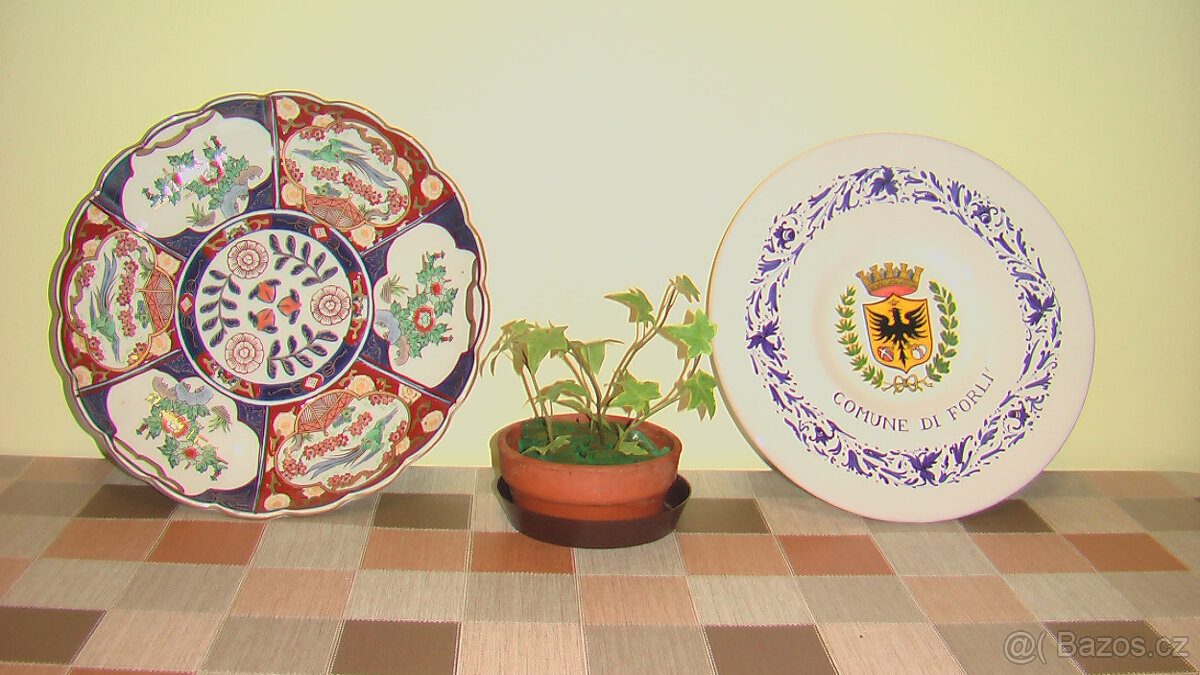 Sběrateli talířů, keramiky a heraldiky nabízím Japonský výstavní talíř a druhý památeční heraldický, s možností zavěšení na zeď. Při rychlém jednání poštovné zdarma.