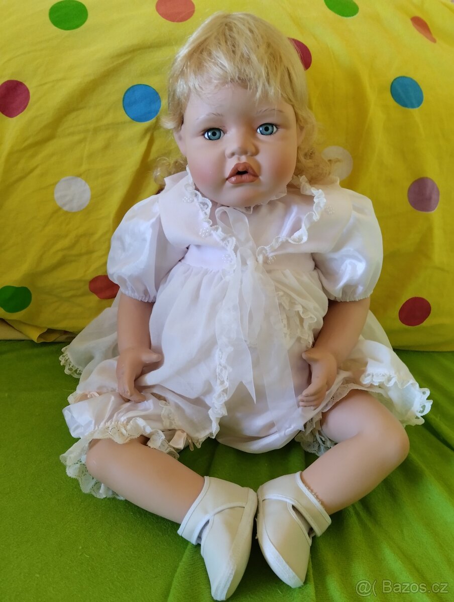 Ze své sbírky uvolňuji tuto krásnou značenou porcelánovou panenku bohužel má u oka prasklinu již jsem tak zakoupila ,z dálky to není vidět.Velikost 62 cm.Inzeruji i jinde koukněte i na další mé nabídky ušetříte na poštovném samozřejmostí je i možnost vyzvednutí u mě doma.Cena snížená.