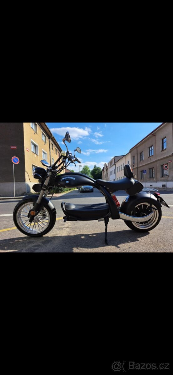 Prodam elktro skútr . Výkon 2000w max rychlost 45km/h (jede až 50) . Kotoučové brzdy , zadní tlumič seřiditelný, led svetla i blinkry , přehledný displey. 2xklíč i dal.ovladač . SPZ povinné ručení jen 150,- ročně. Kupován vloni (přes zimu byla baterie v teple) nájezd 170 km původní cena 45000,- . Nechám za 40000,- Dohoda u stroje možná. (Předem po telefonu neslevuji)