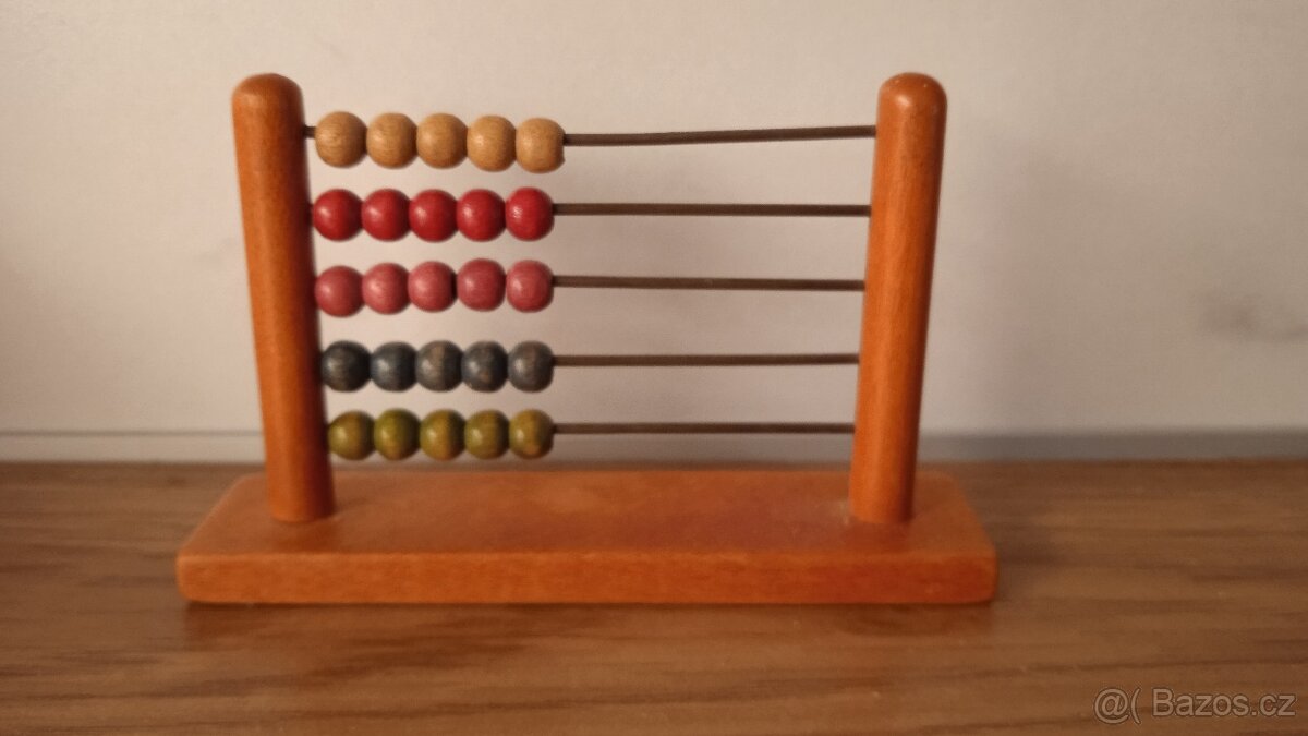 Prodám starožitné miniaturní počítadlo ze dřeva a kovu, 8x5cm.