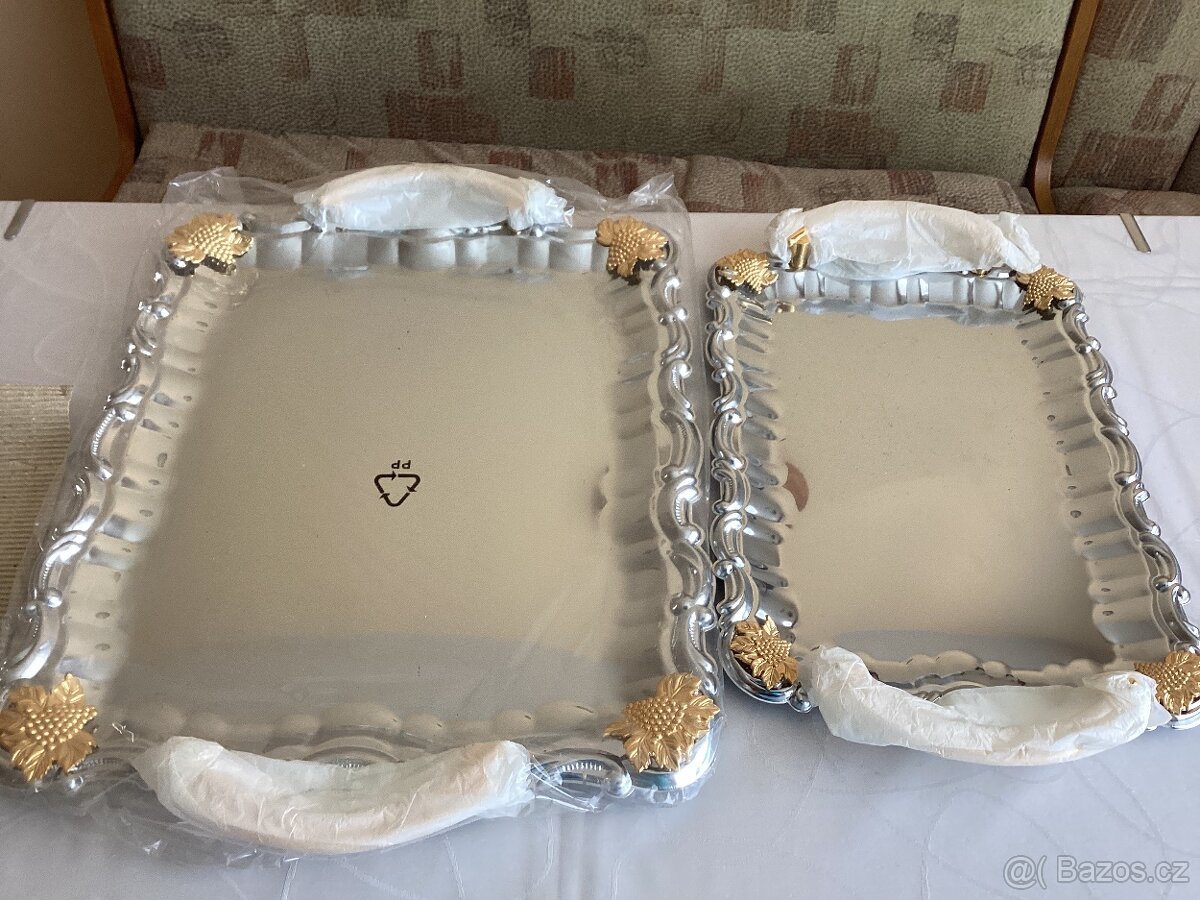 Prodám dva nové stříbrné podnosy, cena 100,Kč za oba.