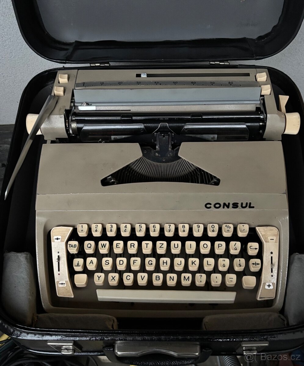 Prodám kufříkový psací stroj Conzul, pěkný stav, nepoškozený. Cena. 400,-Kč.