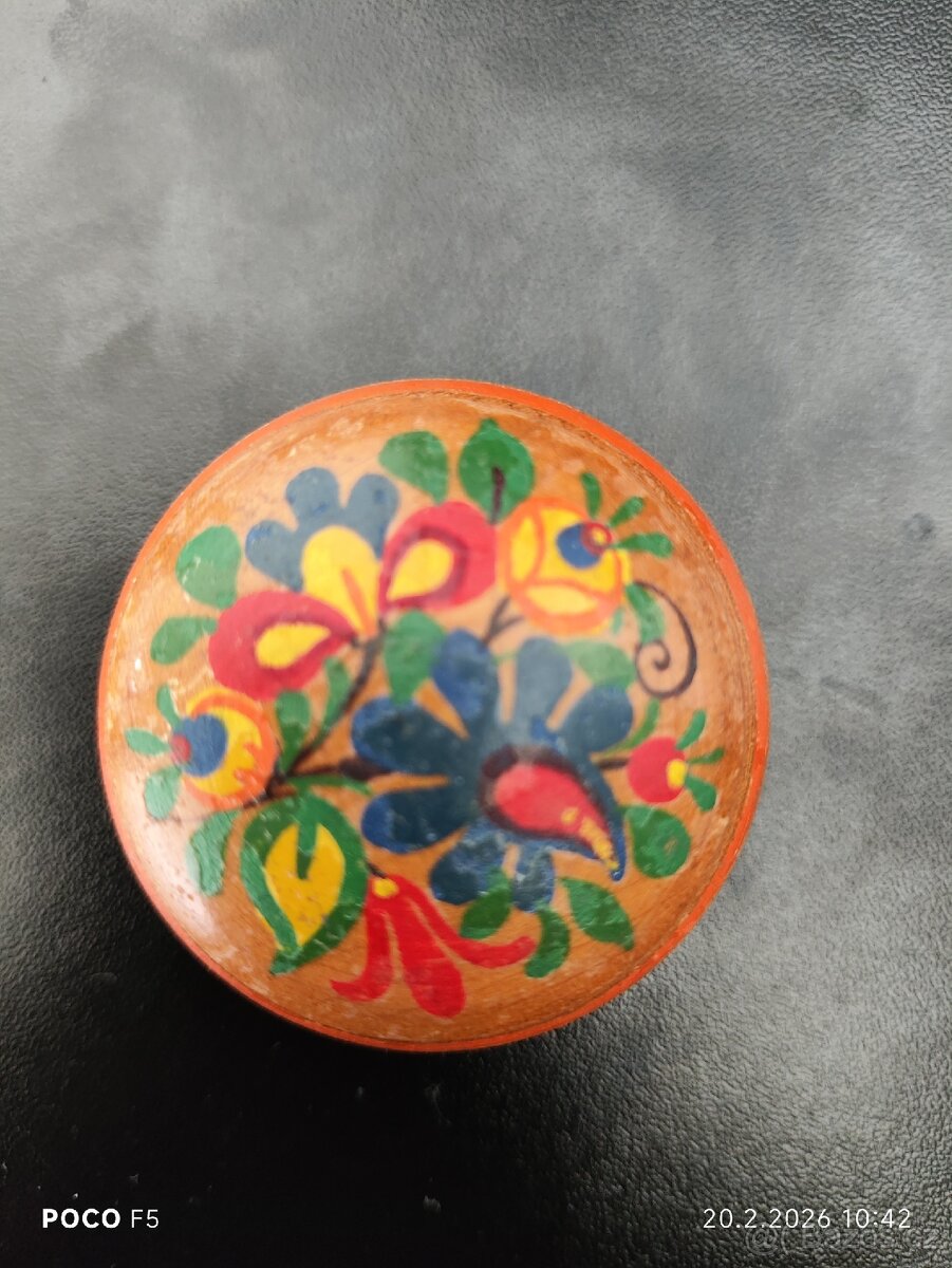 Malovaná stará krabička o průměru 5cm, výška 3cm