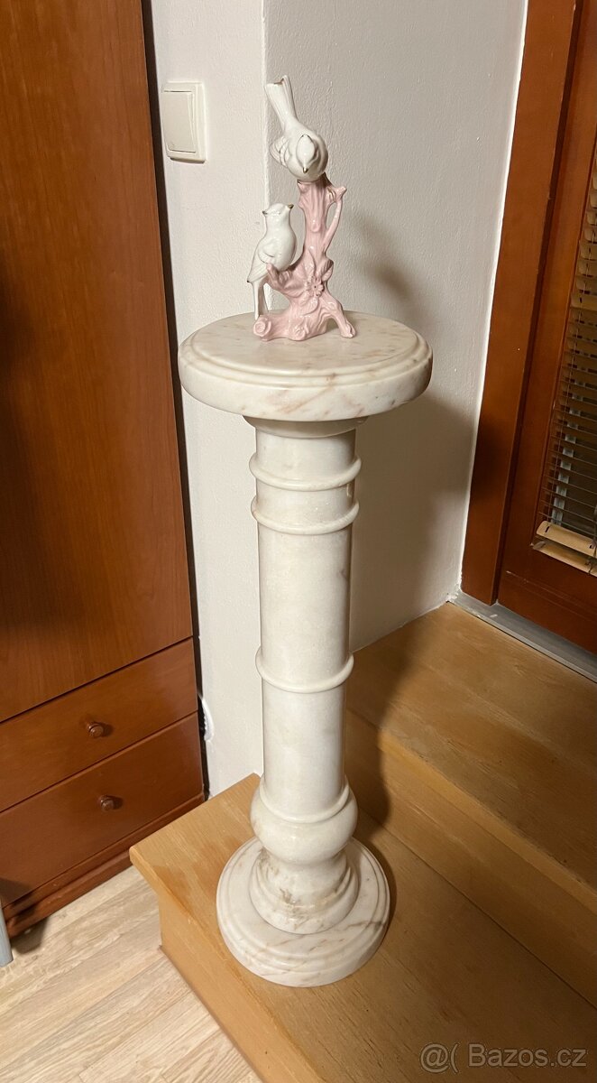 Prodám hezký nepoškozený mramorový sloup vč. keramické sošky. Výška sloupu 82cm, průměr podstavce 24cm, soška 21cm. Pouze osobní převzetí, váží cca 30kg. Inzerát je aktuální! SMS prosím NEpište. Děkuji