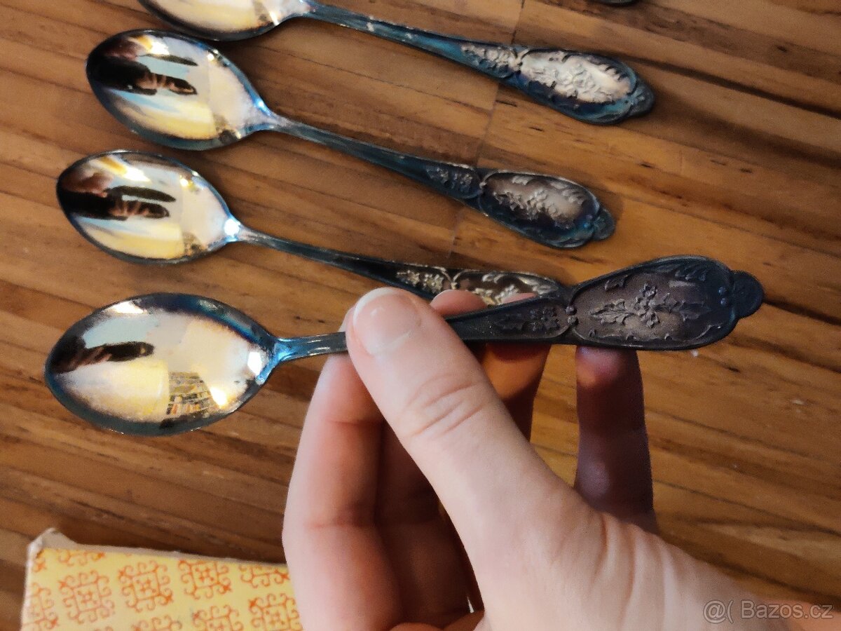 Postříbřené lžičky 6ks - [20.2. 2026]🥄 Retro čajové lžičky – SSSR – dárková sada v původní krabičce