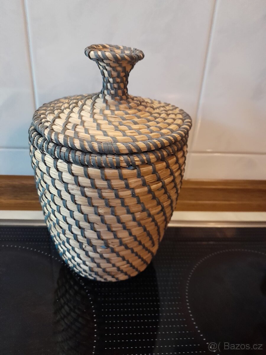 Prodám starou proutěnou nádobu s víkem, bez vad, cena 200kc.
