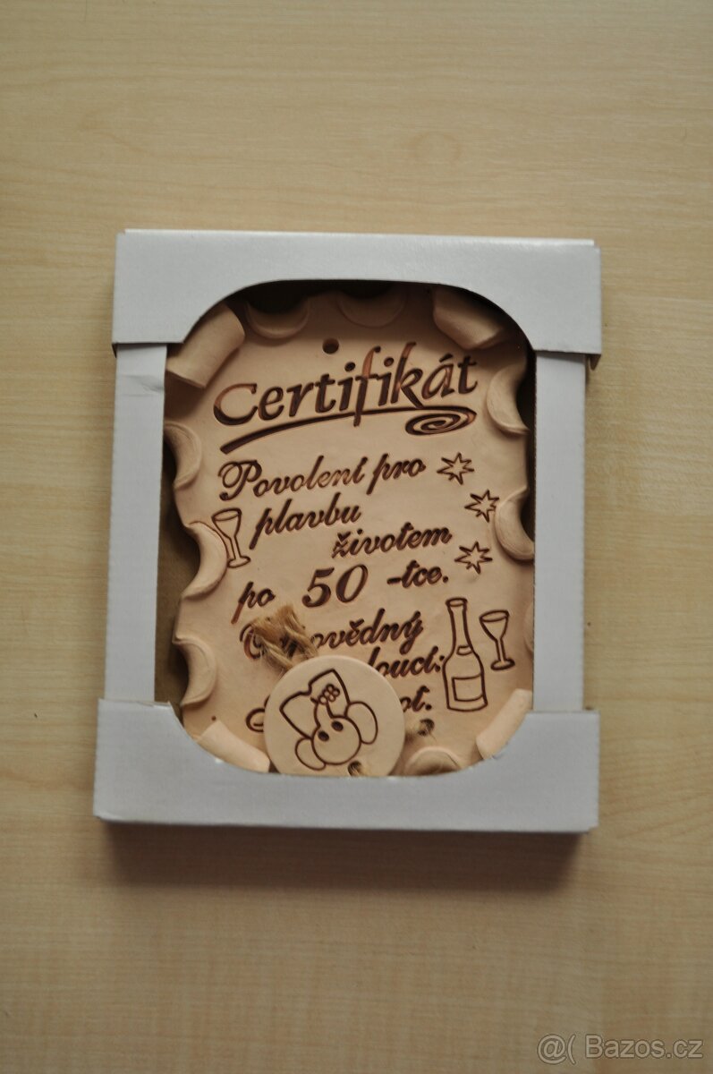Prodám keramický certifikát k padesátinám v původní krabičce.