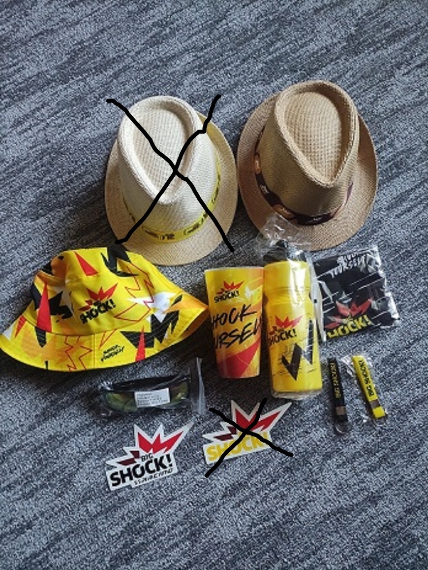 Prodám nové věci Big-shock, klobouky, láhev, kelímek, brýle, nákrčník a samolepky, klíčenky