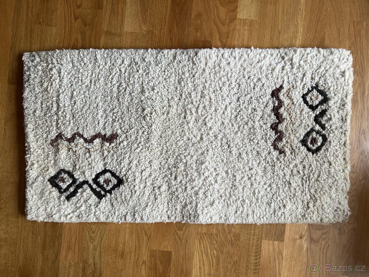Prodám hustě vázaný berberský kobereček ze 100% přírodní vlny. Nebarvený, ornamenty vytvořené přirozenou vlnou hnědých odstínů. Rozměry 100x55cm. Tloušťka cca 3 cm.Tuniský certifikát.