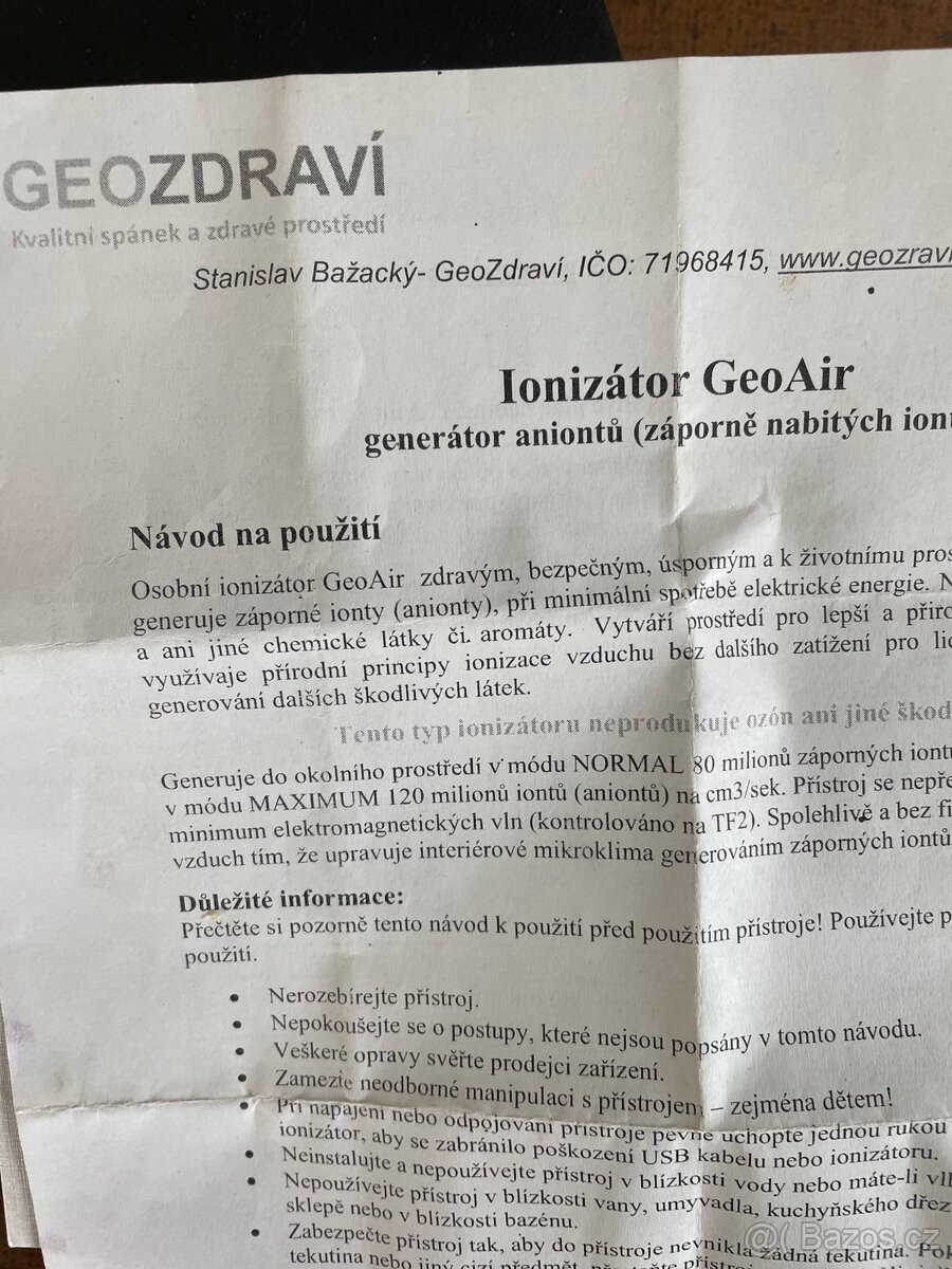 Osobní ionizátor s návodem