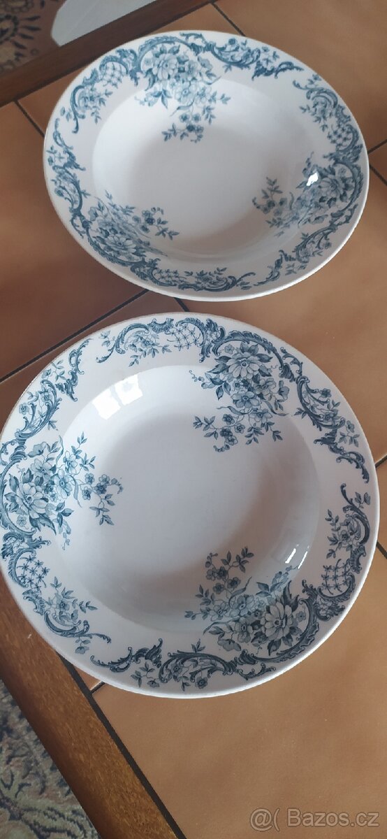 Velmi staré talíře v muzealnim stavu. Jde o velmi starou porcelánku Německo, stáří talířů je 1850. Waechtersbach. Cena je za jeden kus.