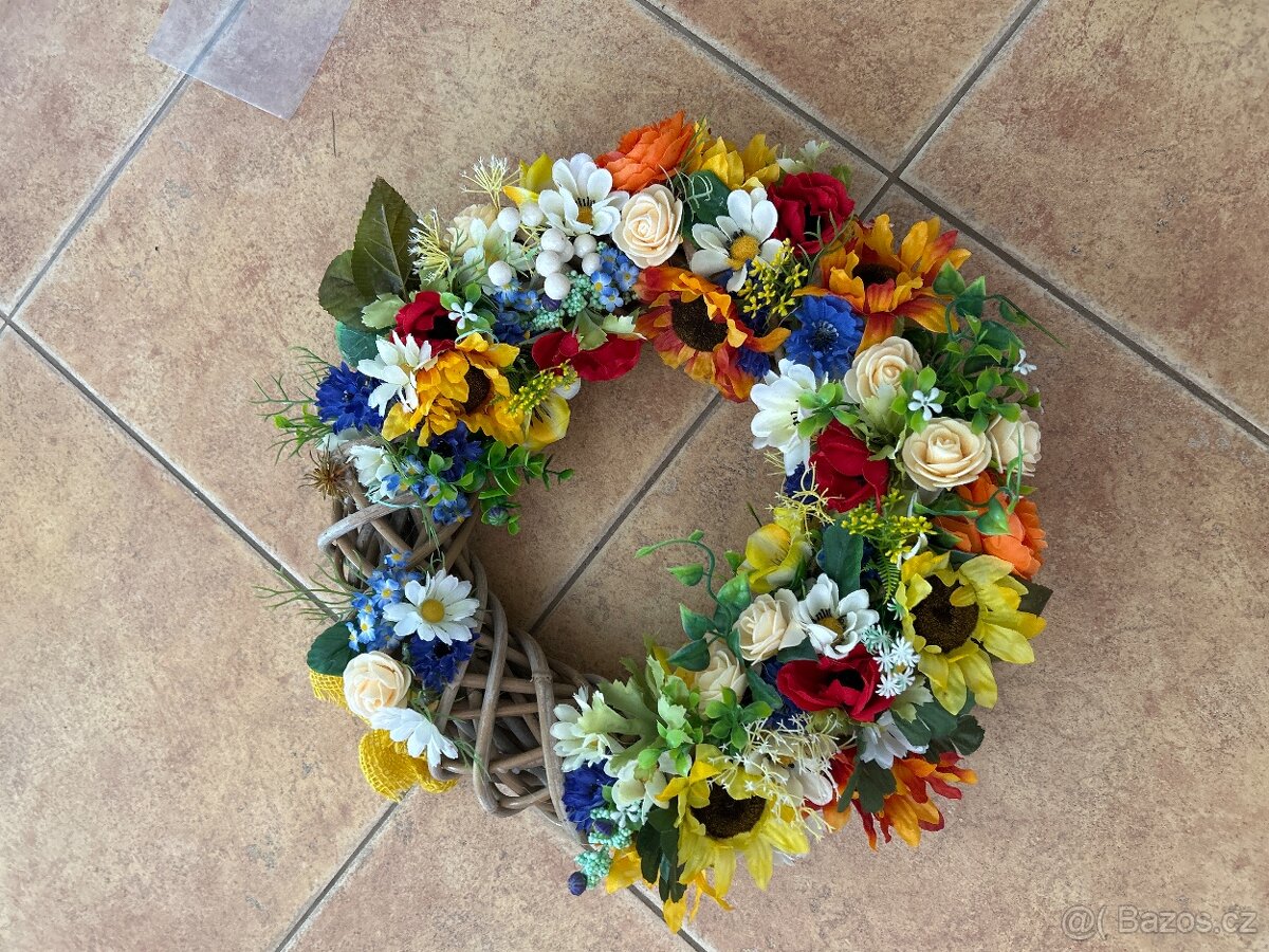 Prodám nádherný, originální věnec na dveře. Průměr věnce 45 cm.
