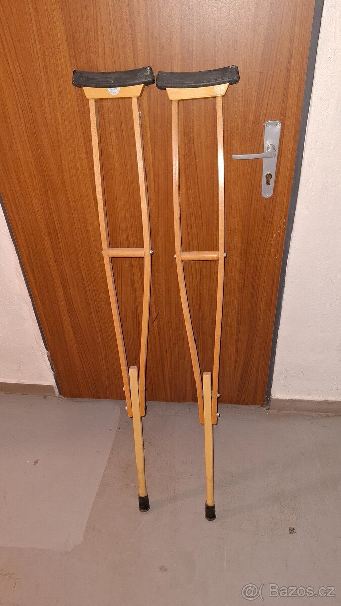 Podpažní berle – dřevěné, pár, nastavitelná délka, gumové koncovky.