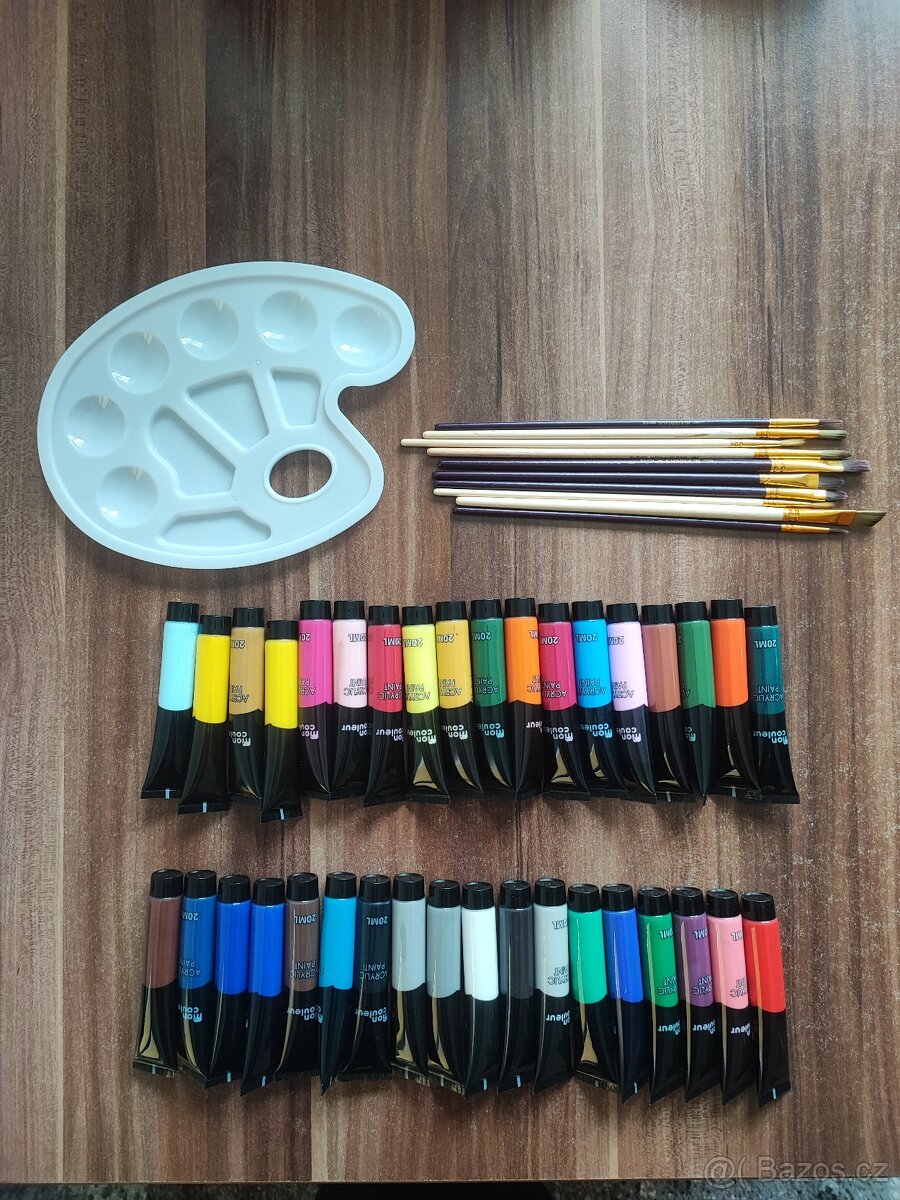 Prodám akrylové barvy , paletu a štětce.