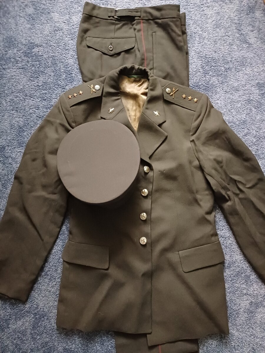 Prodám slavnostní uniformu nadrotmistra ČSLA, starší provedení - bez červené lemovky a podložky pod odznakem na čepici, spojovací vojsko, velikost 47/1, (na štíhlou menší postavu) čepice 56, zřejmě nenošena, nebo jen minimálně. Stav - sbírkový - viz foto. Cena + poštovné (Zásilkovna), nebo možnost osobního převzetí v Praze, nebo na Berounsku. Podívej na moje další inzeráty.