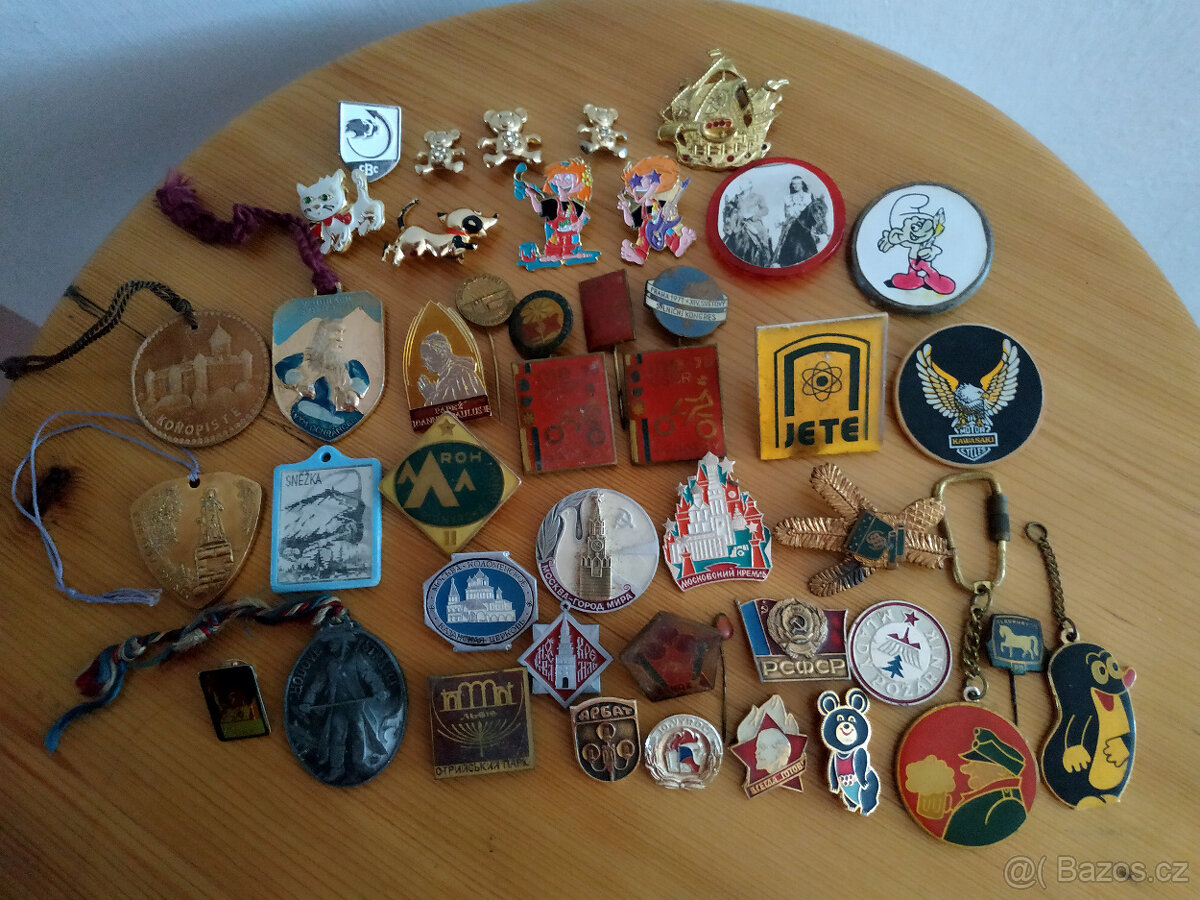 Staré odznaky, brože a přívěšky - viz. foto. Prodám jako celek za 550 Kč. Bližší info na mailu. Podívejte se i na mé další inzeráty.