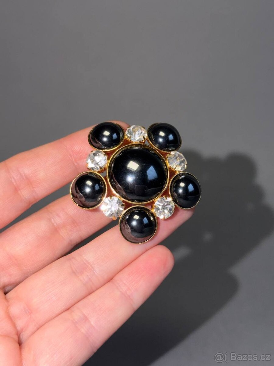Elegantní vintage brož. Osloví milovníky černobílých kombinací.