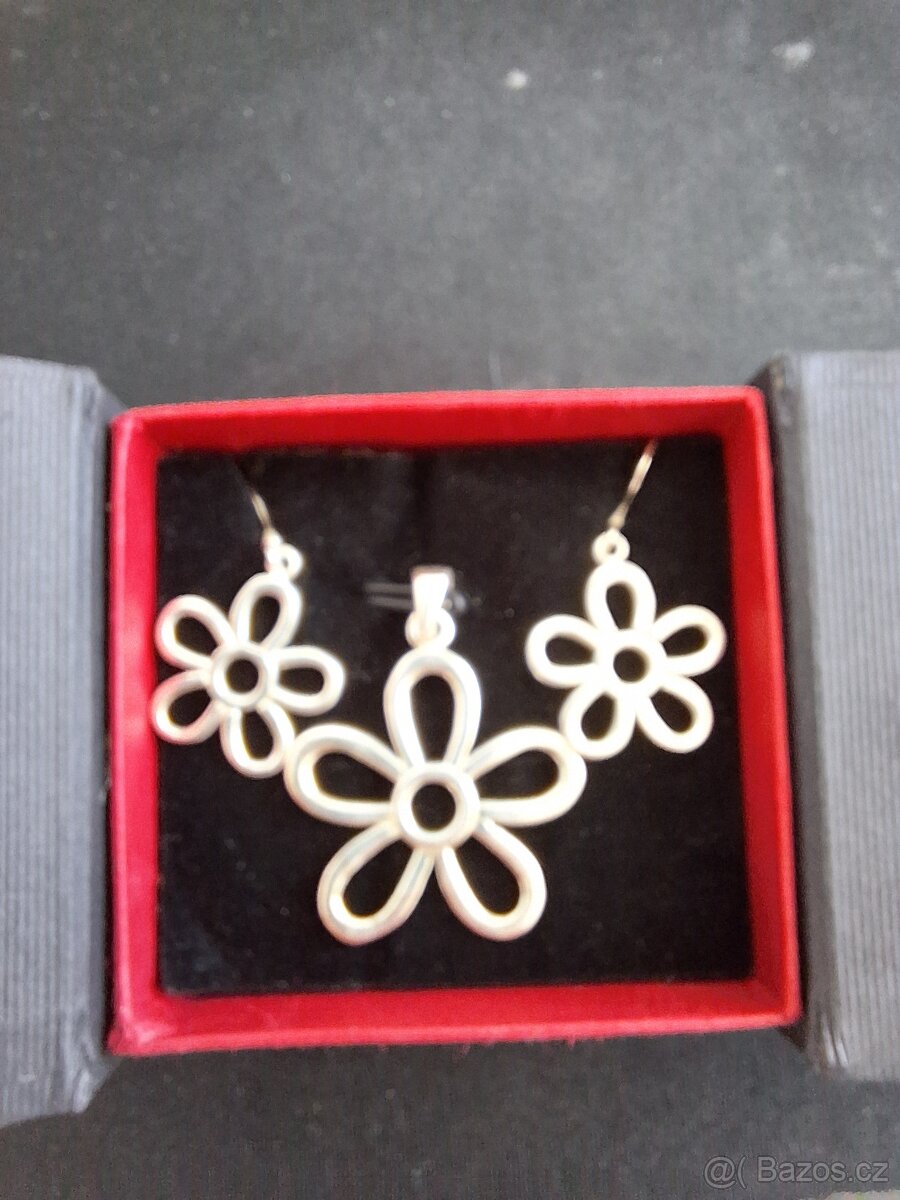 Prodám sadu náušnic a přívěsku ve tvaru květiny,500 kc+ zasilkovna/balikovna. Dárková krabička v ceně. Stříbro 925.