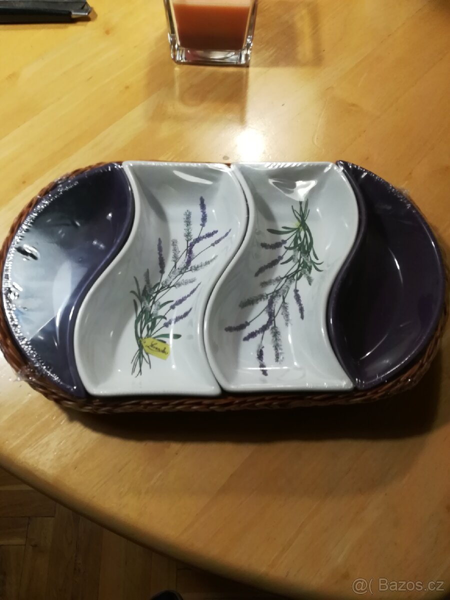 Servírovací misky s košíkem. Nepoužívané, v původním obalu. PC 400,-.