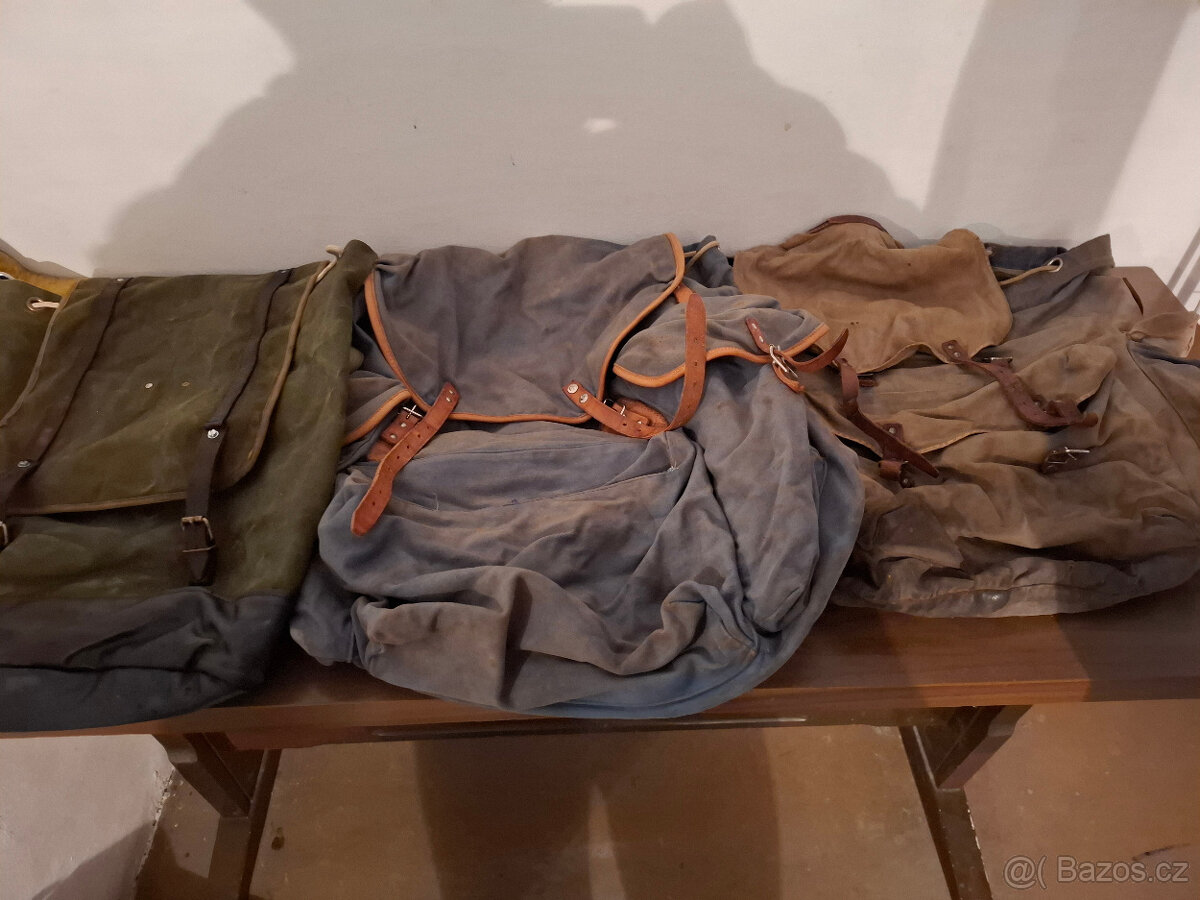 Prodám staré vojenské batohy,pytle-viz foto.Pro fandy KVH apod.Odpovědi na e-mail nebo volat!!!
