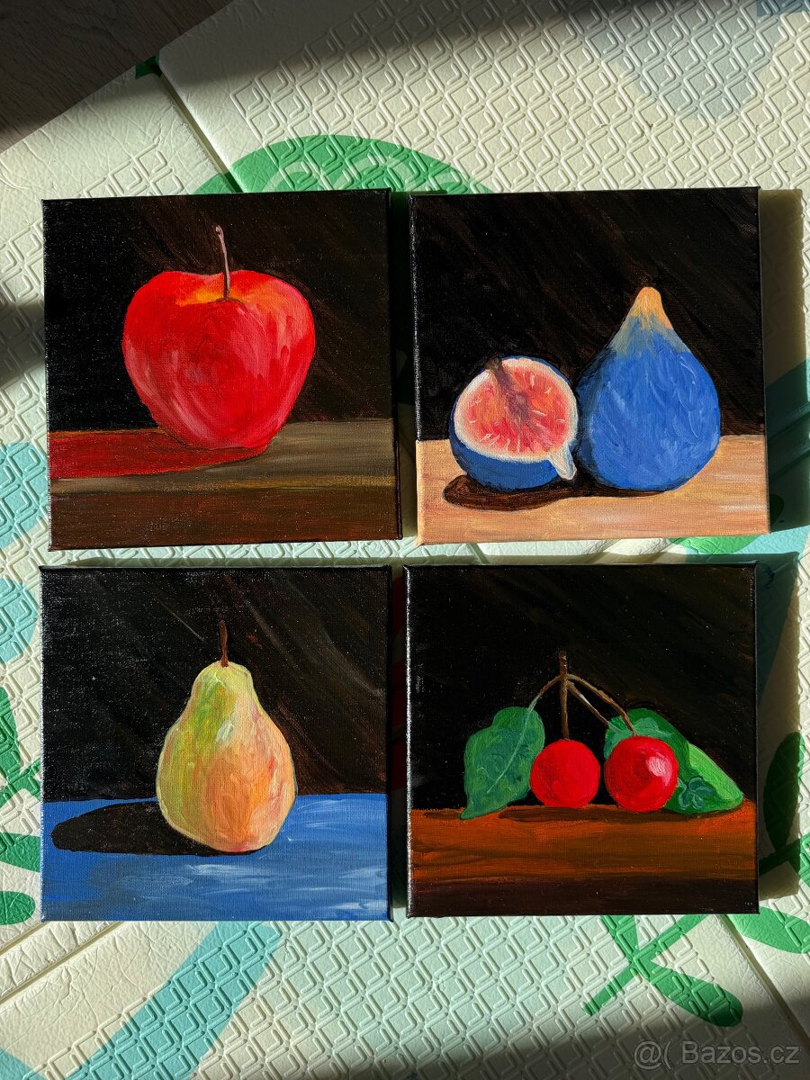 4 malé obrazy malované na plátně 20 x 20, akrylovými barvami a lakované.