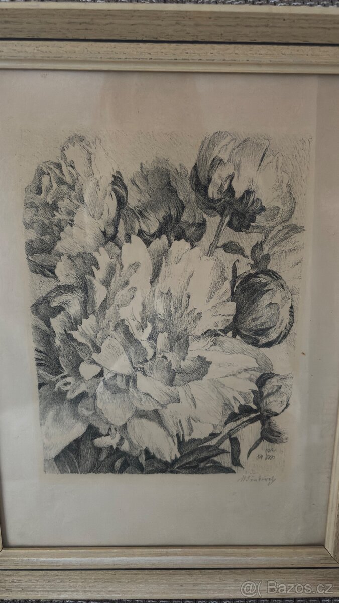 Nabízím k prodeji originální litografii „Pivoňky“ z roku 1954 od Maxe Švabinského.