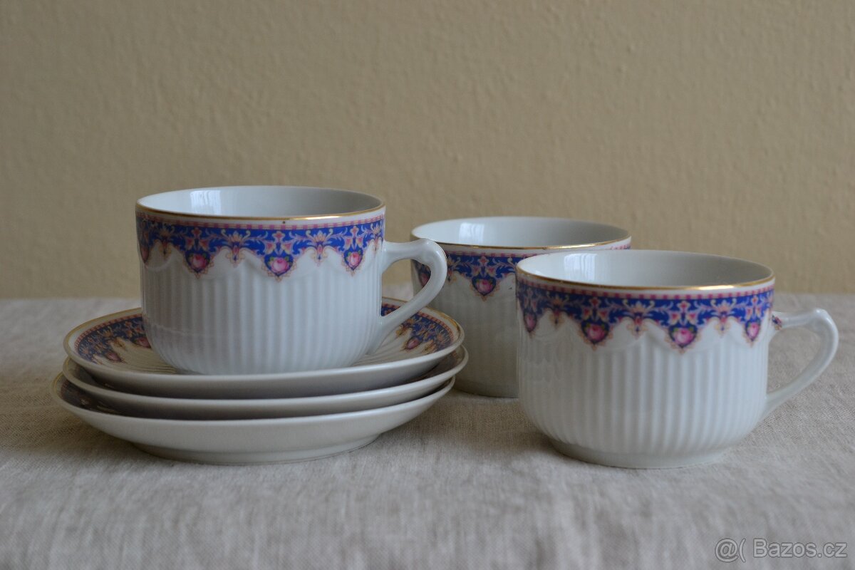 Porcelánové hrníčky s podšálky zn. Loučky - [12.1. 2026]Prodám 6 ks starožitné porcelánové hrníčky v.7cm s podšálky-13cm, zn. Loučky, bez poškození.