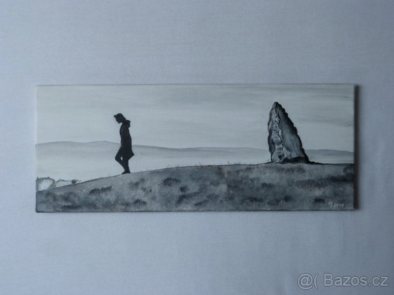 Obraz malován akrylovými barvami na plátno potažené na dřevěném rámu. Rozměr obrazu 20 x 50 cm. Pomalovány i boční strany. Cena 680,- Kč + poštovné.