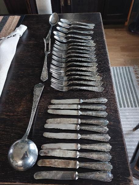 Nabízím sadu jídelních příborů,stav viz foto,značeno 800,znalec pozná,možná se budou někomu hodit,cena nabídněte.