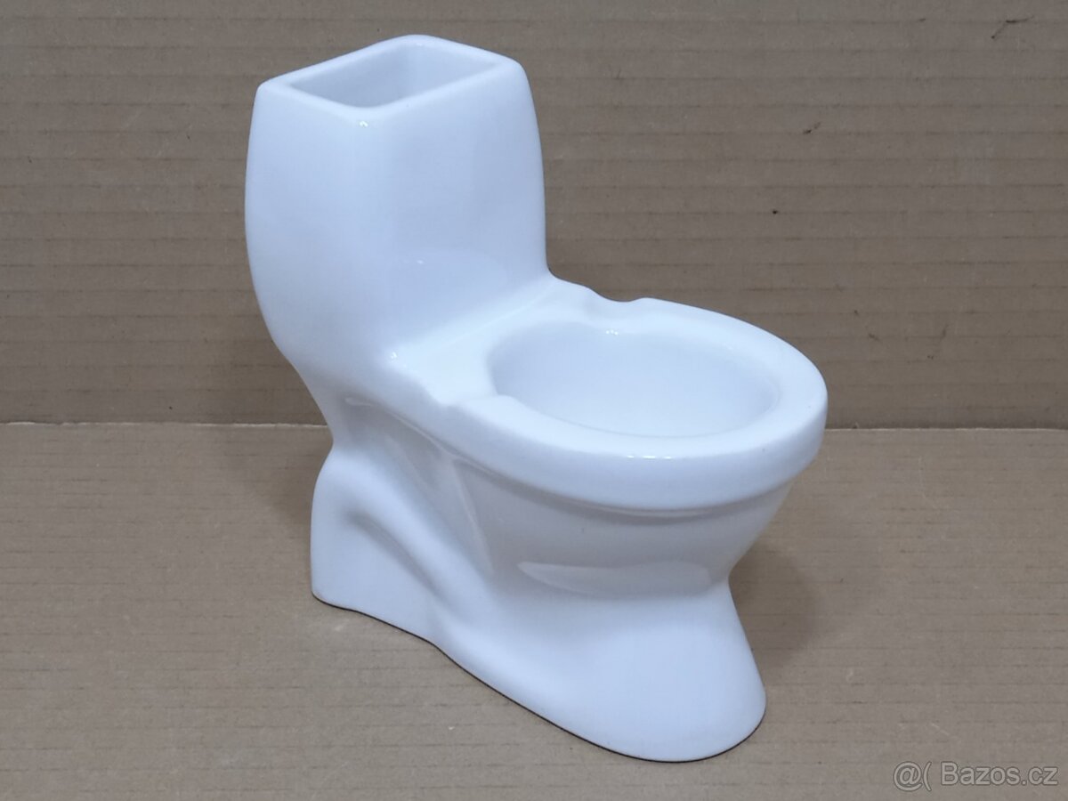 Vintage porcelánový popelník ve tvaru záchodové mísy.