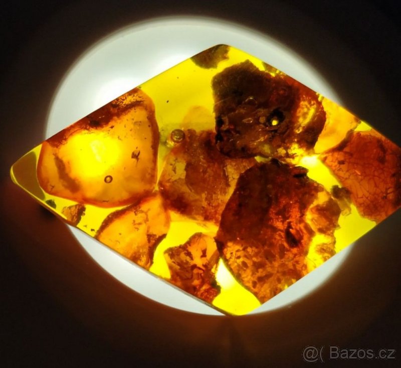 Starší nadčasová brož s inkrustacemi jantarem, Lotyšsko, cca 1970. Zapínání obecný kov. Velikost cca 6,5 X 4,5 cm. -----------------------------------------Pravý jantar může mít až 300 mil.let. Je to zkamenělá živice z obrovských pravěkých borovic. Lze v něm pozorovat usazeniny jílu, písku, či úlomky dřeva. Nejhodnotnější jantar je se zkamenělým hmyzem nebo dokonce ranní rosou. Hodnota takového jantaru může dosáhnout až 50 000 eur. Má léčivé účinky.Čistí organizmus, nastoluje duševní rovnováhu a klid. Uzdravuje duši i tělo.Harmonizuje. Přináší úspěch v podnikání.