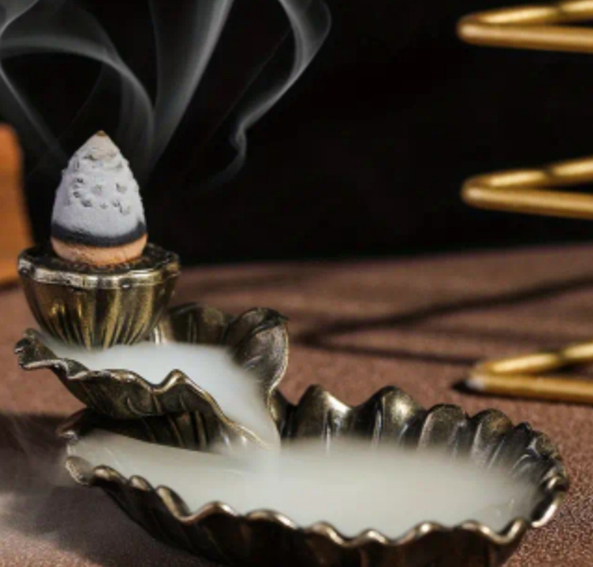 Prodám kovový kadidelník ve tvaru lotosového listu