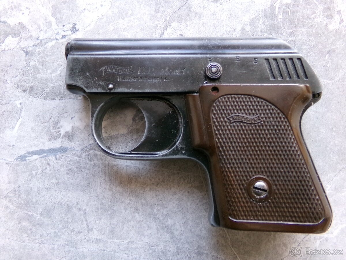 Prodám starý poplašňák Walther U.P.Mod.1 z 50.let.Jedná se o poměrně vzácný,dobře zpracovaný poplašňák.Cvaká,ale o další funkci nic nevím,neboť je bez zásobníku.Stav viz foto.